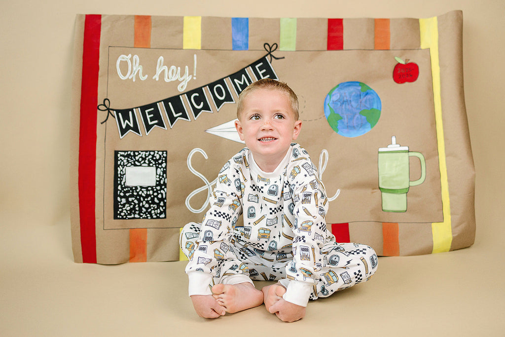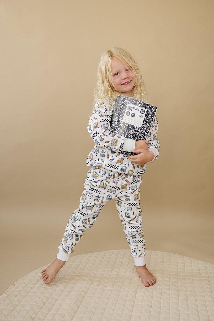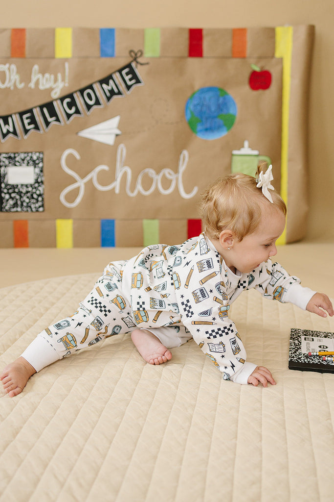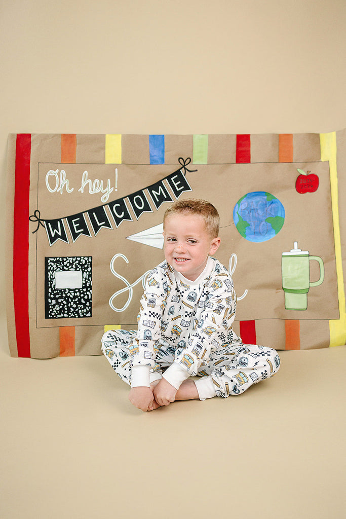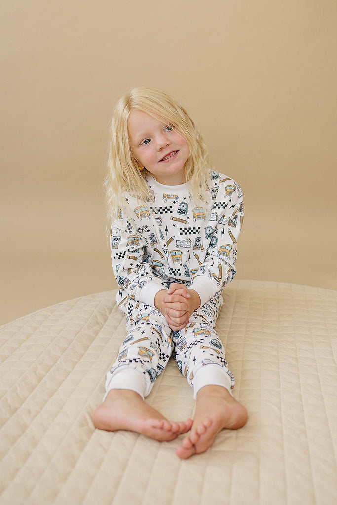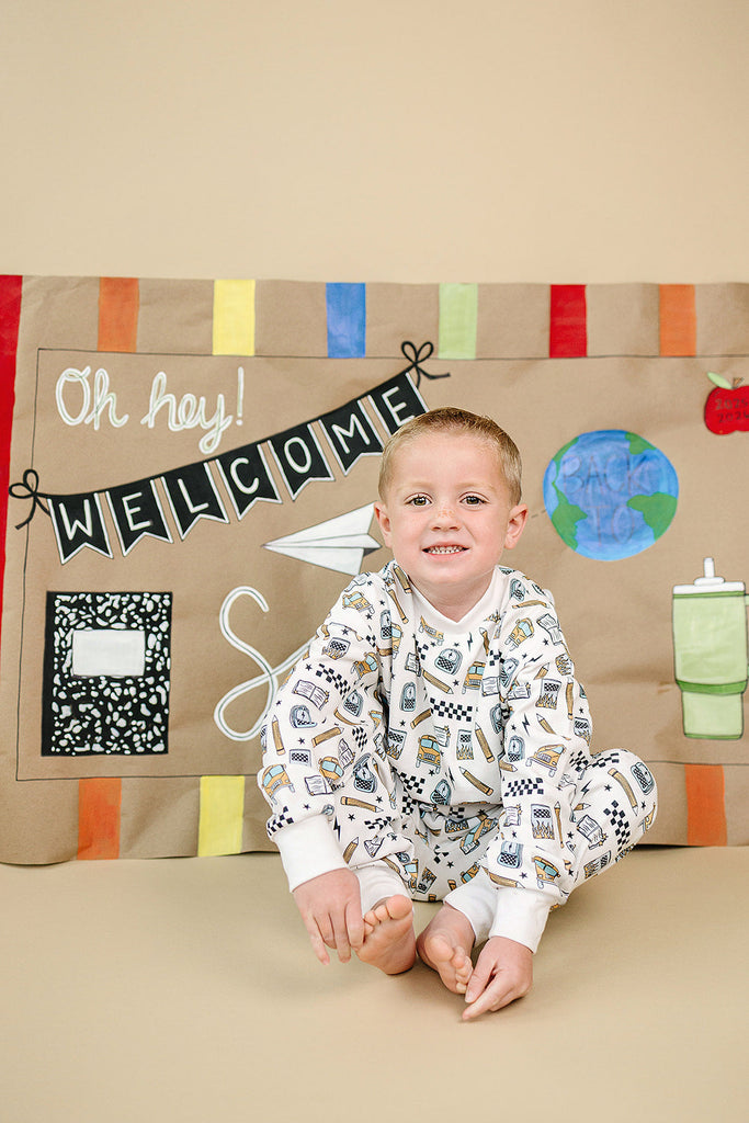 Notebooks, pencils, lightning bolts, and school buses. The Jogger Set | Back 2 Cool brings all the classroom energy in one bold, comfy set. Perfect for first day pics, hallway walks, and snack-time chill.